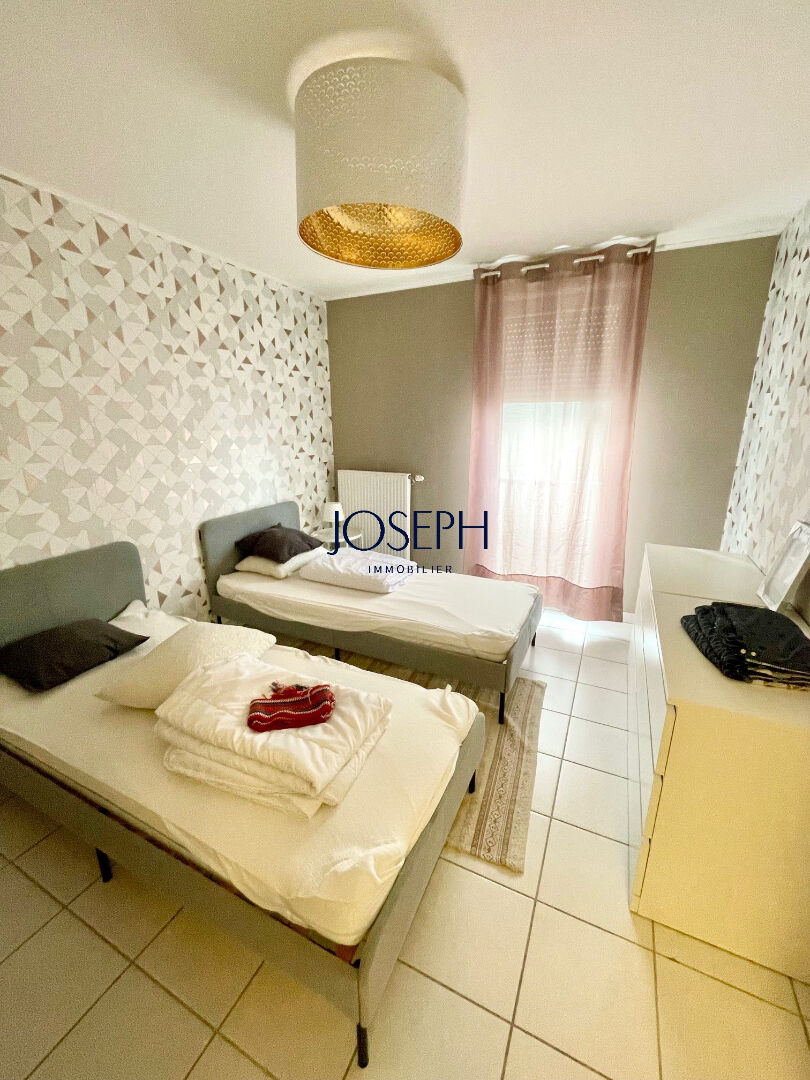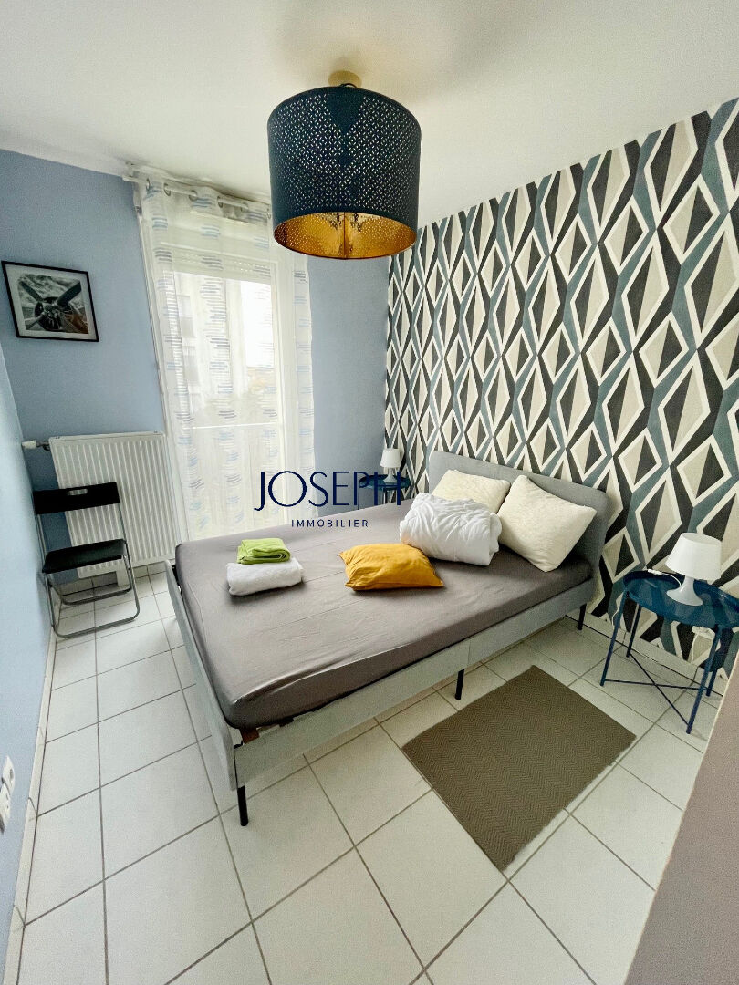 Dans une résidence fermée et sécurisée et à deux pas du tram et des commerces, au 2ème étage avec ascenseur, très agréable T3 meublé avec terrasse. Il se compose d’une grande entrée avec placard, belle pièce de vie de 25 m² avec cuisine ouverte aménagée avec rangements, réfrigérateur et congélateur, plaques vitro, four micro-ondes, lave-vaisselle, et hotte aspirante. Elle donne sur une terrasse de 13 m². 2 chambres séparée avec rangements et placards, salle de bains équipée d’une baignoire, lave-linge, meuble avec rangements. WC séparés.