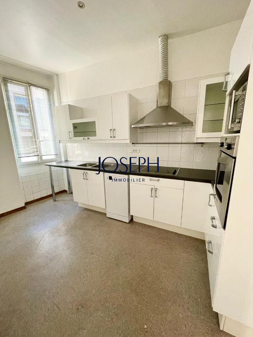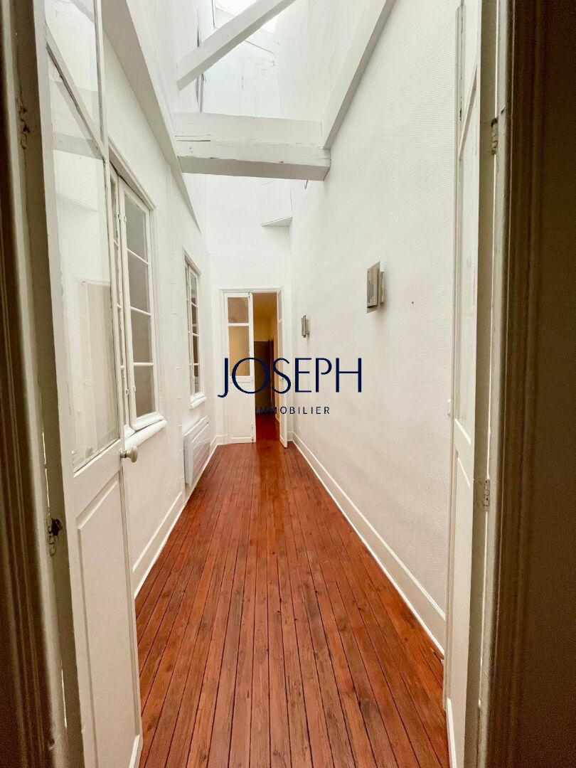 Dans un immeuble ancien rénové, au 1er étage, beau et grand appartement T3 atypique, de 106 m², avec de beaux volumes. Il se compose d’une grande entrée/bureau de 13 m² éclairée par un patio en verrière de 9 m², d’une cuisine séparée de 9 m² aménagée avec placards et équipée d’une plaque vitrocéramique avec hotte, four, four micro-ondes, lave-vaisselle, réfrigérateur avec congélateur. La cuisine donne sur le salon de 22 m², attenant à la salle à manger de 17 m². Un dégagement dessert une chambre de 11 m² avec rangements, qui ouvre sur le patio, des toilettes séparés et une belle salle d’eau de 4 m² avec grande douche. La chambre principale de 17.5 m² complète l’appartement.