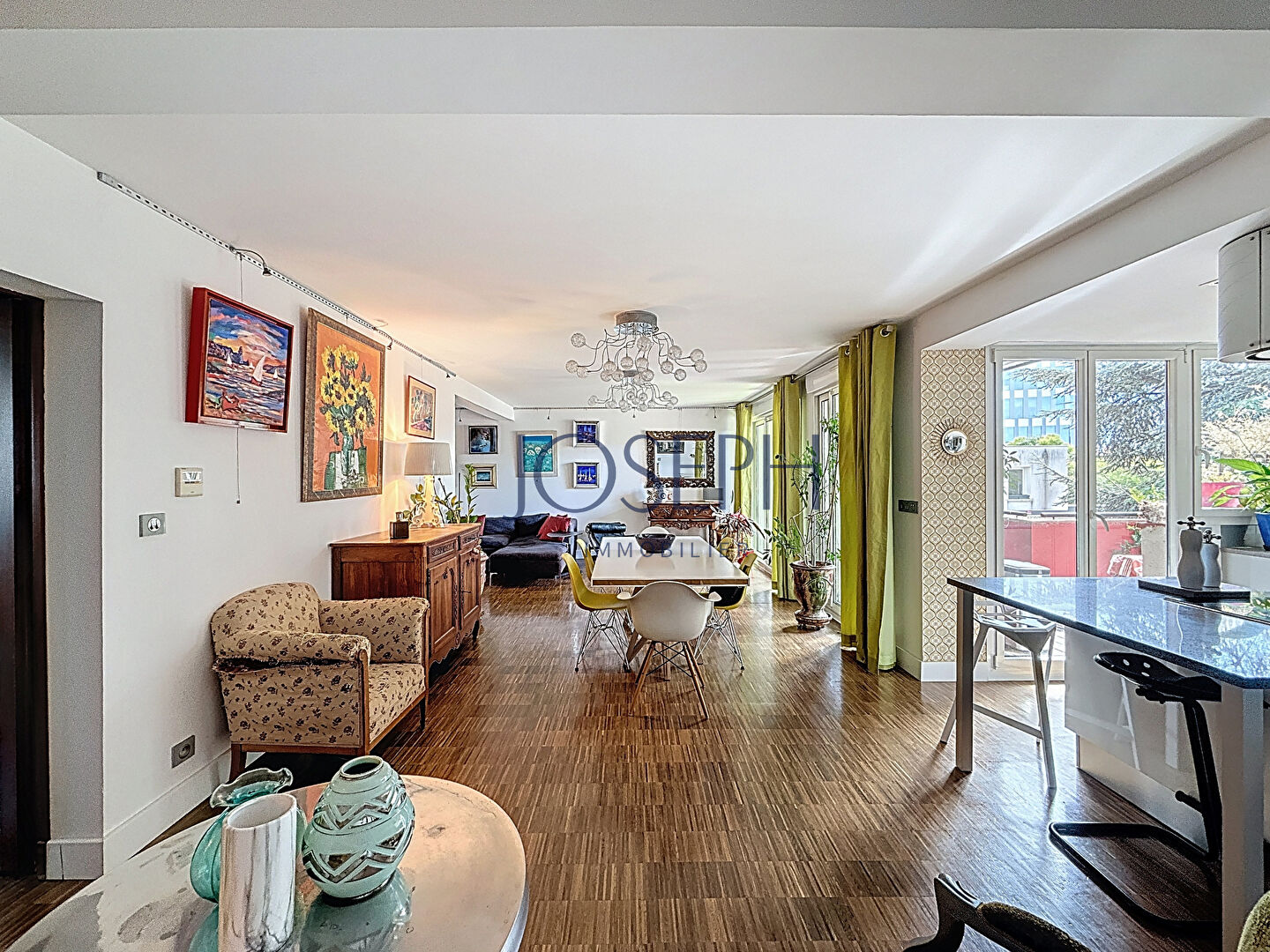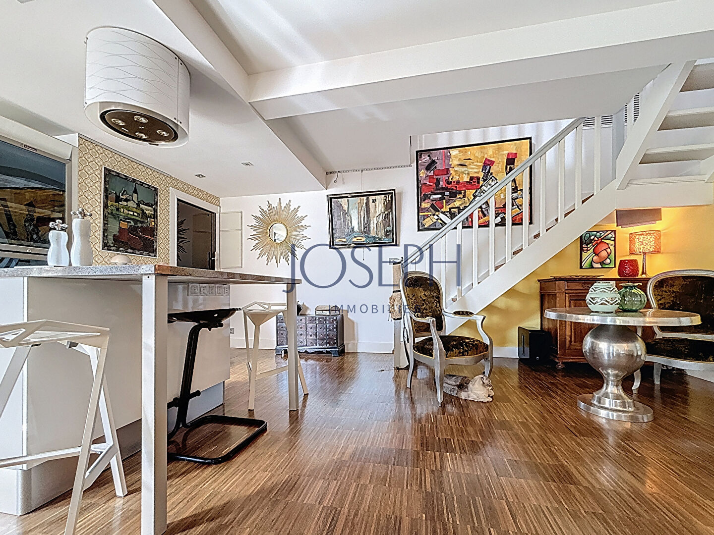 ROSERAIE, situé à 200m du métro, au sein d’une petite résidence de standing de 8 lots, au deuxième et dernier étage, grand duplex rénové de 120 m² comprenant :