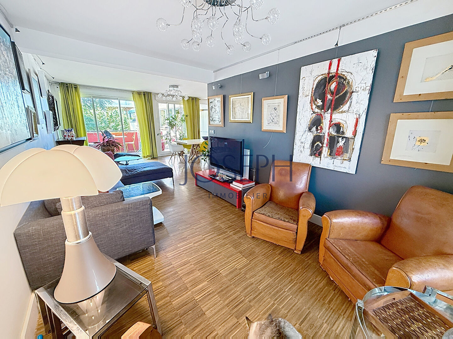 Une entrée avec placards, un très beau séjour traversant d’environ 60 m² avec cuisine ouverte entièrement équipée donnant sur une belle terrasse au calme et sans vis-à-vis. Deux chambres et une salle d’eau avec douche à l’italienne.