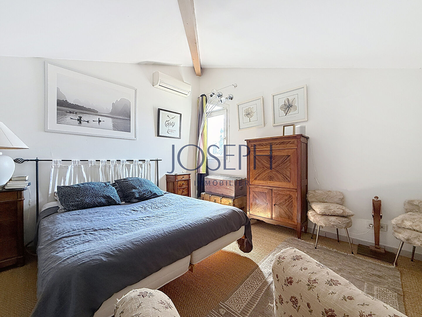 A l’étage : une grande chambre.