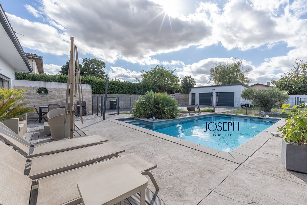 A l’extérieur : jardin paysager, terrasse ensoleillée, piscine et cuisine d’été de 17 m², parfait pour profiter de chaque journée.