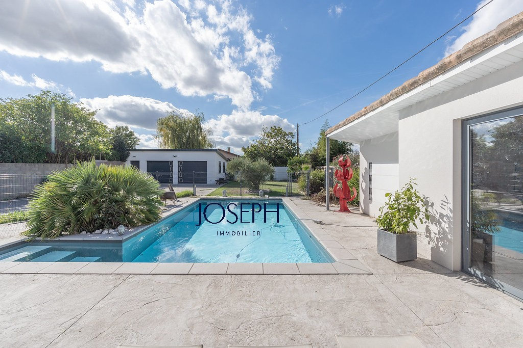 Au calme, sur un terrain plat sans vis-à-vis, cette villa rénovée offre une pièce de vie lumineuse de 55 m² avec cuisine ouverte et béton ciré.