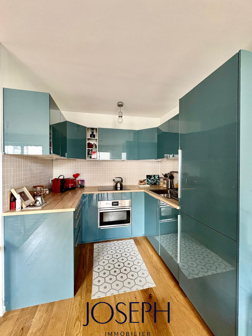 Une entrée avec rangements, un vaste séjour lumineux avec cuisine ouverte, entièrement équipée, donnant accès à une belle terrasse de 10 m², au calme absolu.